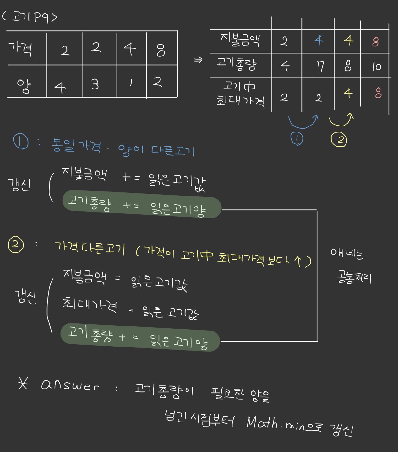 - 그치만 양이 2, 3인 애들은 가격이 더 적은게 아니기 때문에 담을 수 없다.