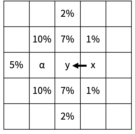 이건 이 모래를 열심히 구현하면 되긴 하는데, 여기서 바로 저 α 칸에 0.55를 넣으면 안되고, 각 칸에 모래를 다 나눠주고 나머지를 마지막에 빼줘야 답이 나온다... 소수점 버림 때문인지 쨌든 이것도 이 문제를 까다롭게 만들었다;