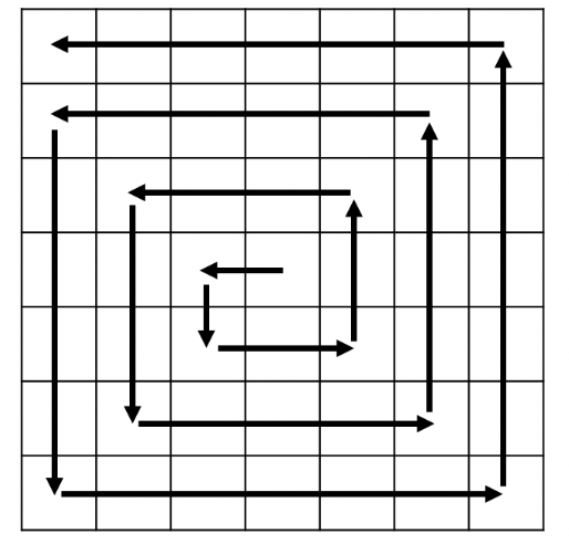 - 방향은 계속 좌 - 하 - 우 - 상으로 번갈아 반복된다.