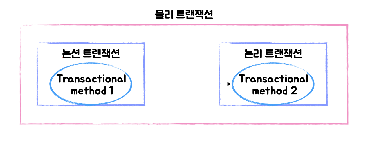 논리 트랜잭션 : 스프링이 트랜잭션 매니저를 통해 트랜잭션을 처리하는 단위