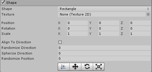 particle system의 inspector - shape에 가보시면 cone모양으로 설정이 되어있는것을 확인할 수 있습니다.