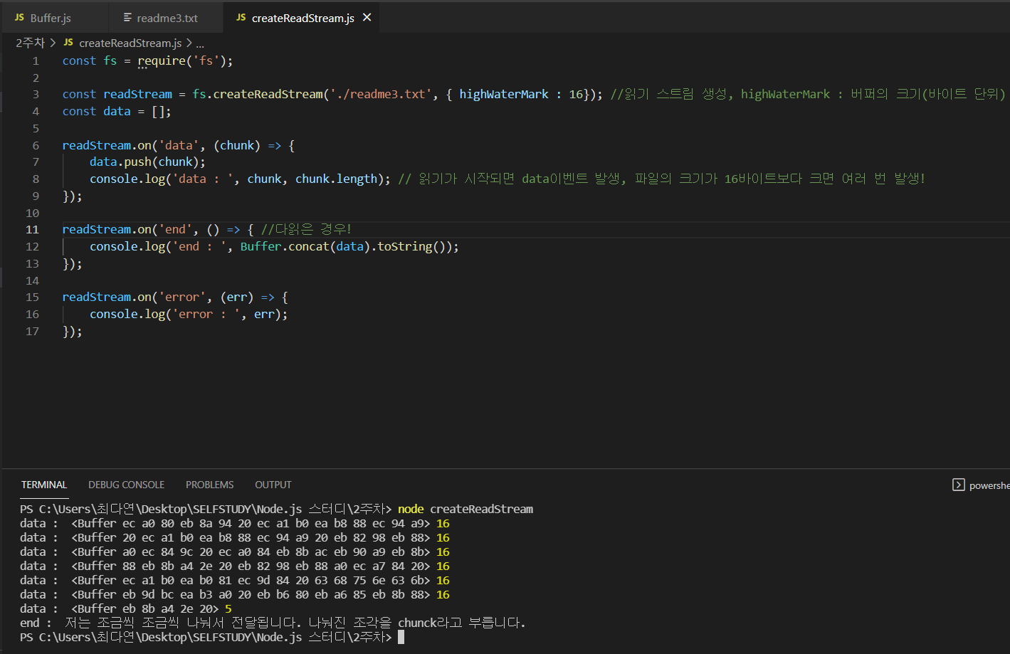 콘솔창을 보면 여러 번 나눠져서 읽는 것을 확인할 수 있다.