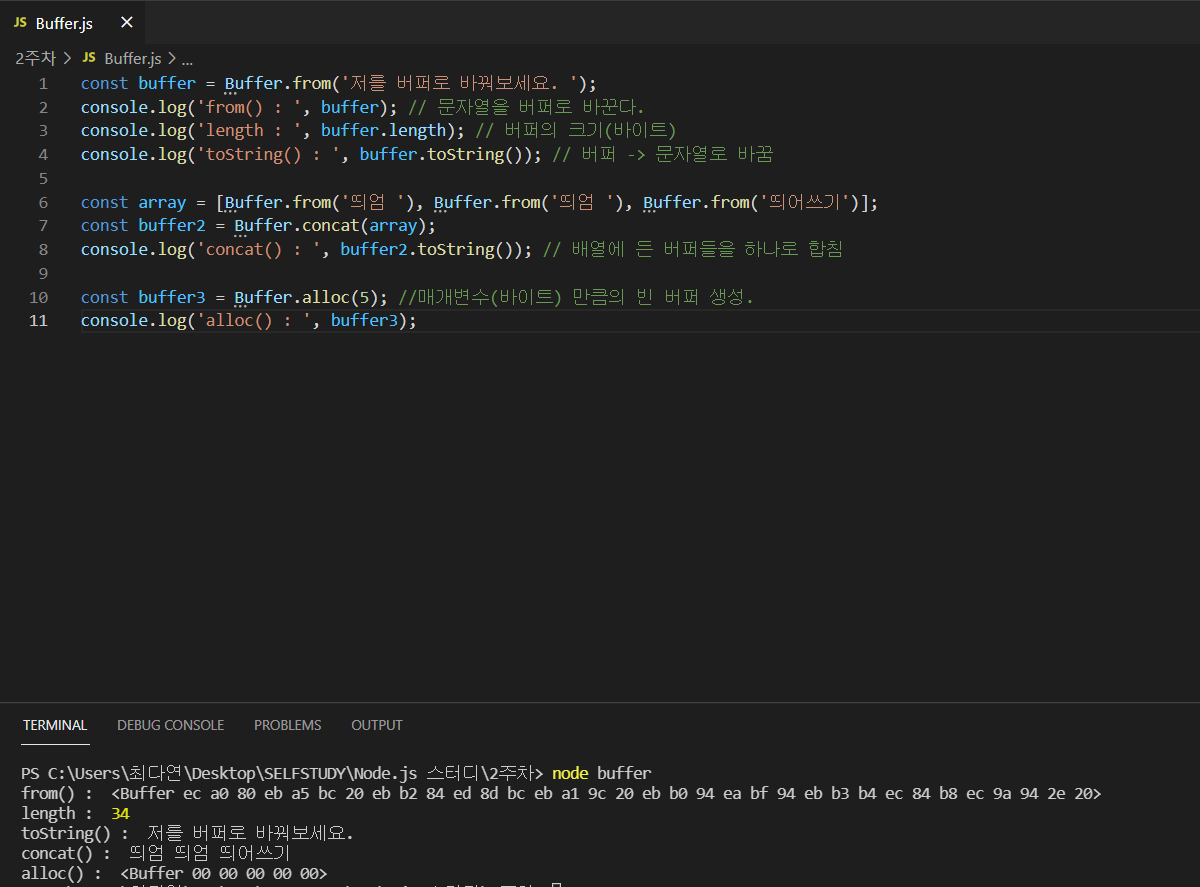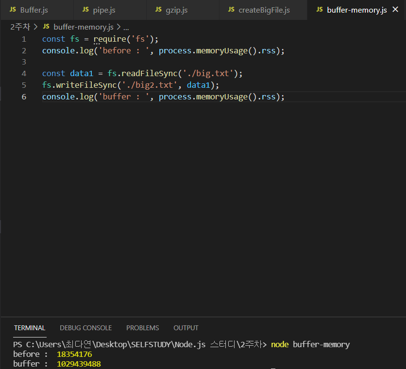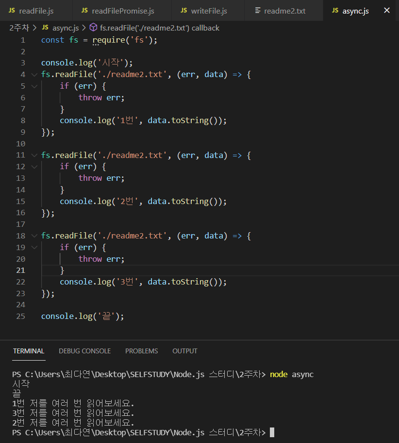 이번 주차에는 Node.js 교과서의 3장 노드 기능 알아보기를 끝내기로 했다. 3.6절 파일 시스템 접근하기 ~ 3.8절 예외 처리하기까지이다.
