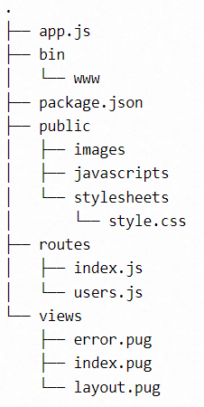 출처 : https://expressjs.com/ko/starter/generator.html 그럼 위와 같은 구조가 만들어지는데, 여기서 아래처럼 바꿨다.