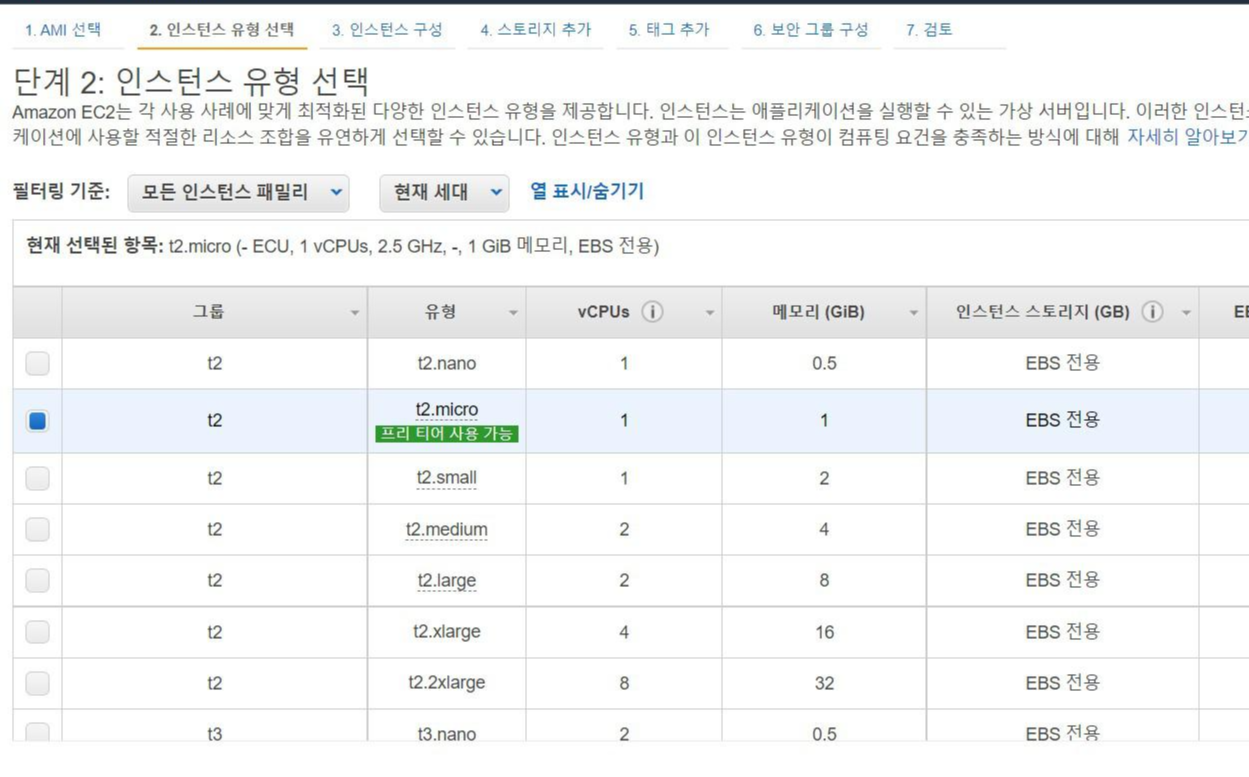 📌 프리티어 사용할거니까 프리티어 옵션들로 선택해줘야 과금이 안된다.. 회원가입할 때 카드를 입력했기 때문에 옵션 잘못 선택하면 호로록 나간다...