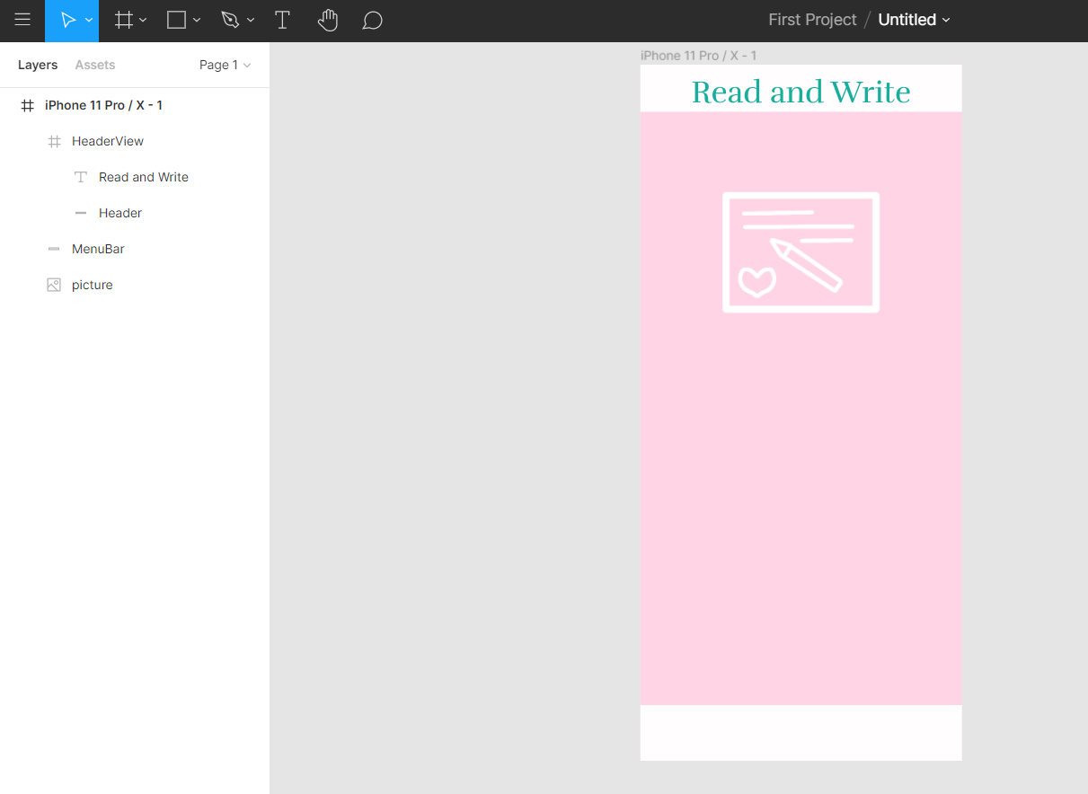 아까 프레임 만드는 방법과 똑같이 하되, 왼쪽에서 기종 선택하지 말고 저 헤더 직사각형 크기만큼만 드래그해서 프레임을 만들어주면 된다.