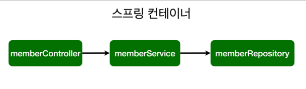 📌 스프링 빈 등록할 때는 기본적으로 싱글톤으로 등록(하나만 등록, 모두 같은 인스턴스)한다. 위 그림에서 예를들어, orderService처럼 다른 서비스가 memberRepository참조한다. 이러면 전에 만들어진 memberRepository(이미 스프링 컨테이너에서 생성된)애를 전달해줌.