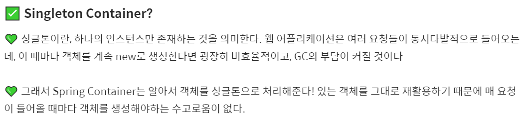 - 💚생성자 사용(@RequiredAgrsConstructor : final이 선언된 모든 필드를 인자값으로 하는 생성자 자동생성 라이브러리)