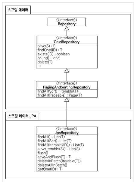 보통 CRUD는 기본적으로 구현되어 있음, pk기반아닌 다른 것들은 jpqa라는 쿼리 작성해줌.