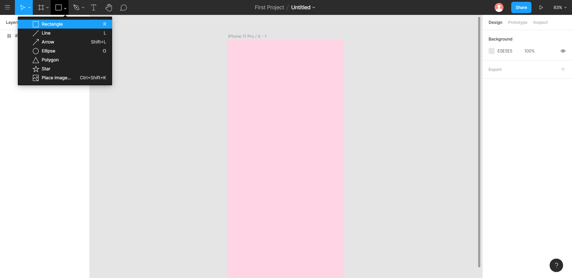 Rectangle 을 그린다. 어플리케이션 상단바를 표현하고 싶으니 색은 흰색으로 맞춰주었다.