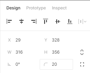 그리고 약간 모서리를 둥글게 처리하고 싶어서 저 사각형 오른쪽 속성창에서 위 사진처럼 20이라고 지정해줬다.