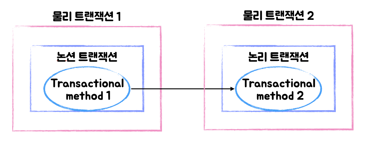 논리 트랜잭션 : 스프링이 트랜잭션 매니저를 통해 트랜잭션을 처리하는 단위