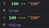 - 비교 연산자 ==과 ===의 차이는 자료형을 보냐 안보느냐. 후자는 자료형의 변환을 허용하지 않아서 false가 출력.