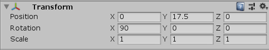 우측 inspector의 Trasnfrom칸의 Rotation값을 보면, x축 방향으로 -90도라고 설정이 되어있는것이 보입니다.