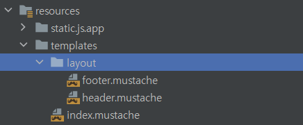 이렇게 레이아웃 틀을 만들어두었기 때문에 index.mustache코드는 간결해진다.