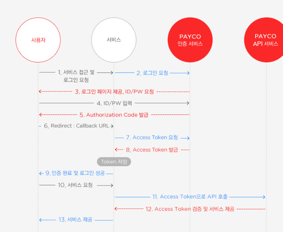 위 그림처럼 Access Token을 통해 인증한다. JWT 토큰이랑 차이점이 궁금해져서 좀 찾아봤는데, jwt토큰에는 암호화된 정보들이 포함이 되어있다. 여기는 그냥 단순 토큰이다.
